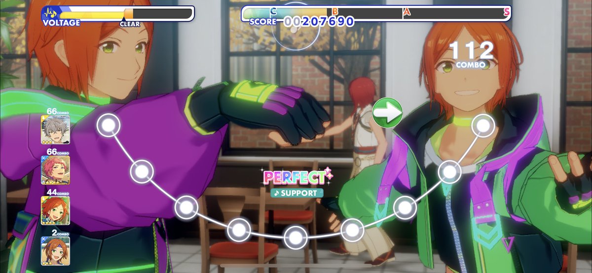 あんライで、野生(?)の双子と出会ったんだけど、カフェの曲の晃牙くんのところをひなたくんにするとめっちゃ2人にお迎えされるし、FIST OF SOULの3番手5番手を双子にすると双子で戦うのめっちゃエモい。楽しかった。 死ぬほど下手くそなスクショ。