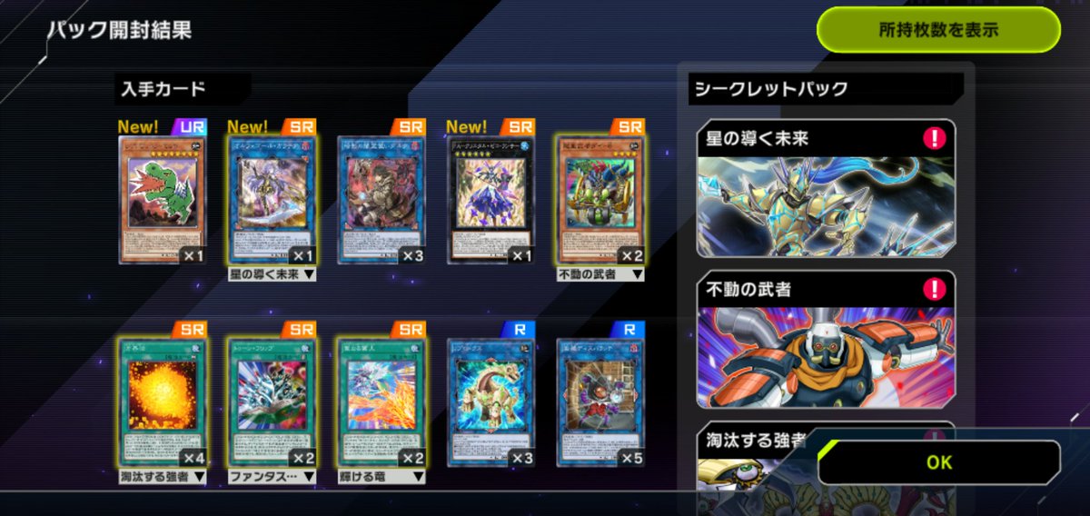 えぇ……何なんや今回の追加パック……。マジで見所がなくてビックリするぞ……。魔妖新規欲しいから回すけど、回す意味皆無では? らくがきじゅうと恐竜族、魔妖新規、バイスマスター、ソゥマくらいか? これ、回らんのでは?