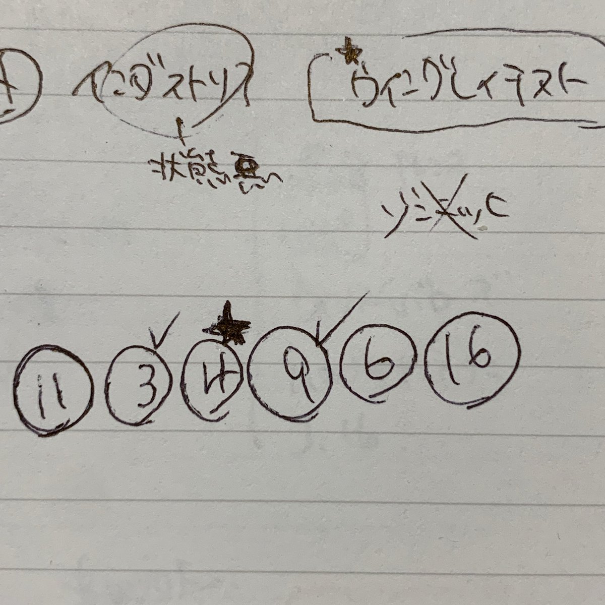 1着⑧番 インダストリア強いんですけど、状態良くないと聞いて切った馬でした🥲16も1度切ったけどやっぱり来ましたね。 ③の出遅れ痛かったなぁ💦 単純に馬場に合った強い馬を選んだつもりでしたが、切った馬が1番最強でしたか😂①着以外は掲示板内来たの切ない…これ、当てれた…