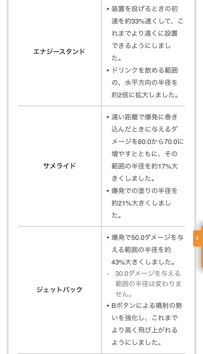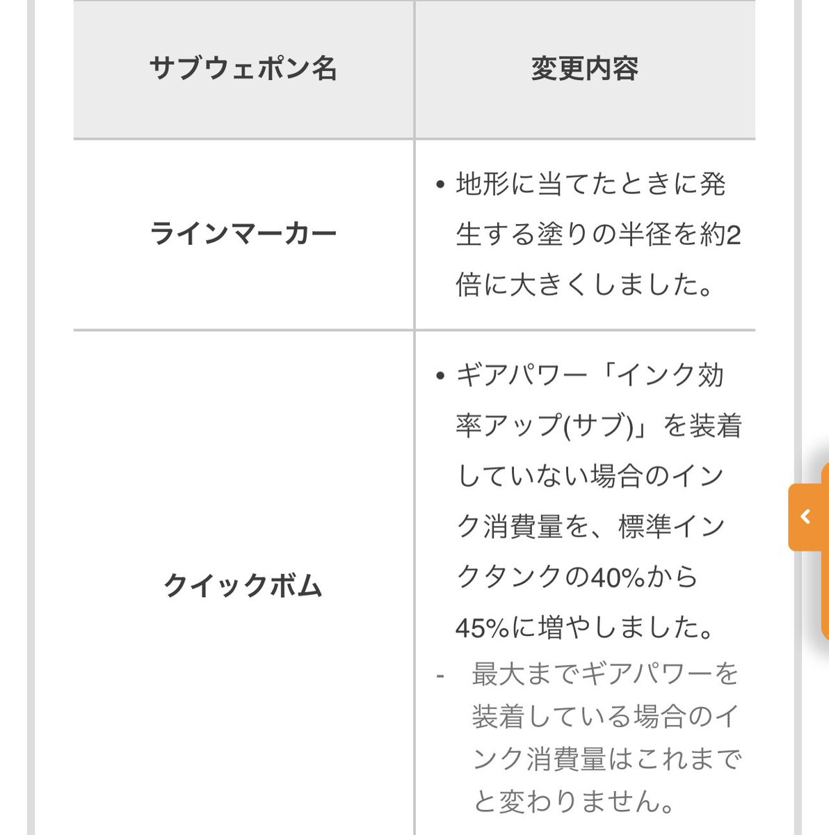 ラインマーカー強化 クイボ弱体化 キューインキ強化 エナスタ強化 サメ強化 ジェッパ強化 ハンコ強化 カニ弱体化 テイオウ弱体化 サブ軽減強化 スタダ強化
