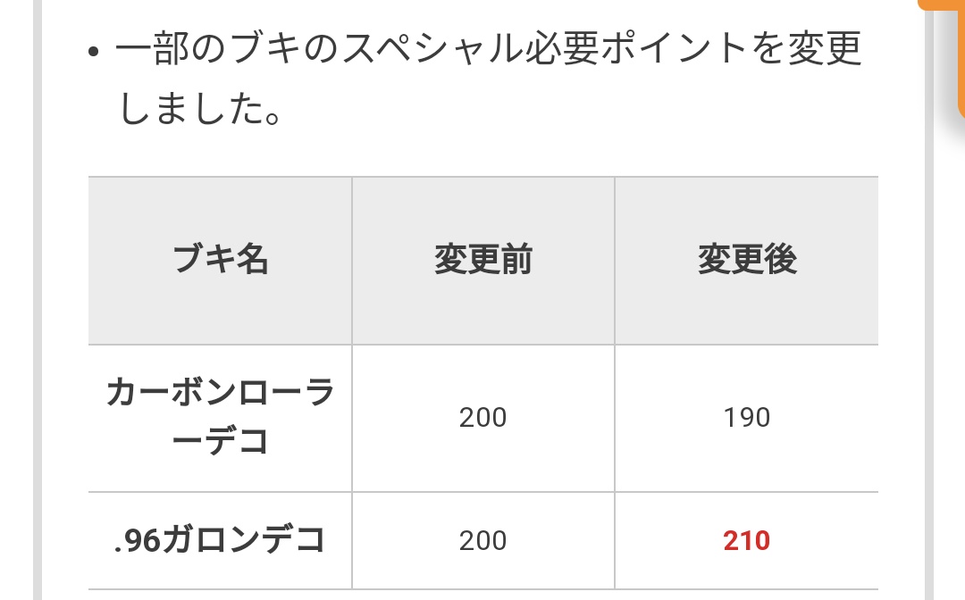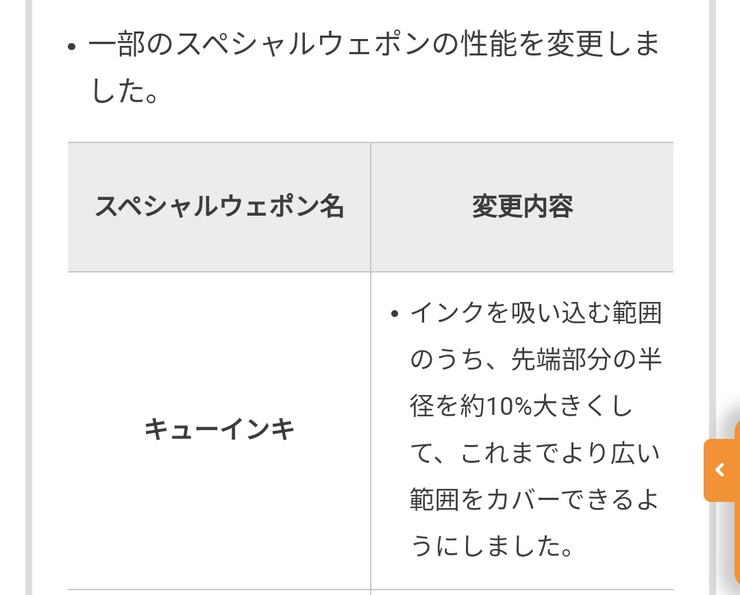 ワイドローラー、過去の強化で最大3確になり、対物性能が上がり、今回で1確2確の範囲が長くなって確実に強くなってる。特に2確範囲が約5割増しってのが大きいと思う。ついでにキューインキも強化されてるのも嬉しい。 ネタブキ卒業の可能性あるしデコ来たら化けるポテンシャルはあるんじゃないかな!