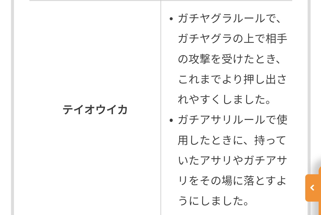 ラインマーカー強化 クイボ弱体化 キューインキ強化 エナスタ強化 サメ強化 ジェッパ強化 ハンコ強化 カニ弱体化 テイオウ弱体化 サブ軽減強化 スタダ強化