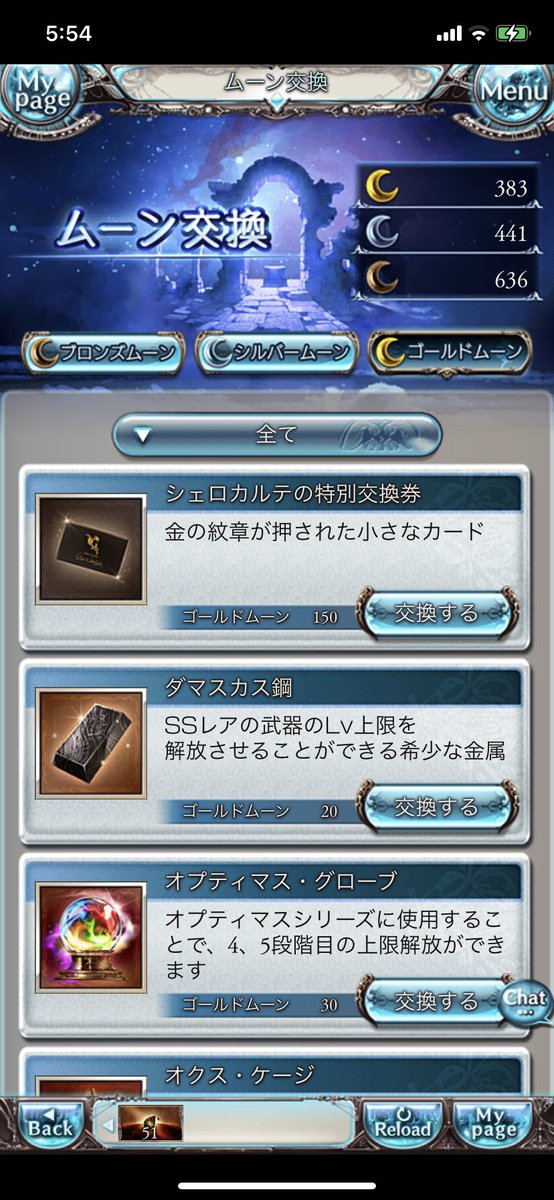 シェロチケ交換後の残ったムーンでエレキシュガル交換するか悩む エレキシュガルなくても肉集めは0ポチ通常軸は完成してるし、どちらかというと光のほうがきつい気がするから色々悩む ハロフロいるけどエレキシュガルあれば快適な話しか聞かないし悩む