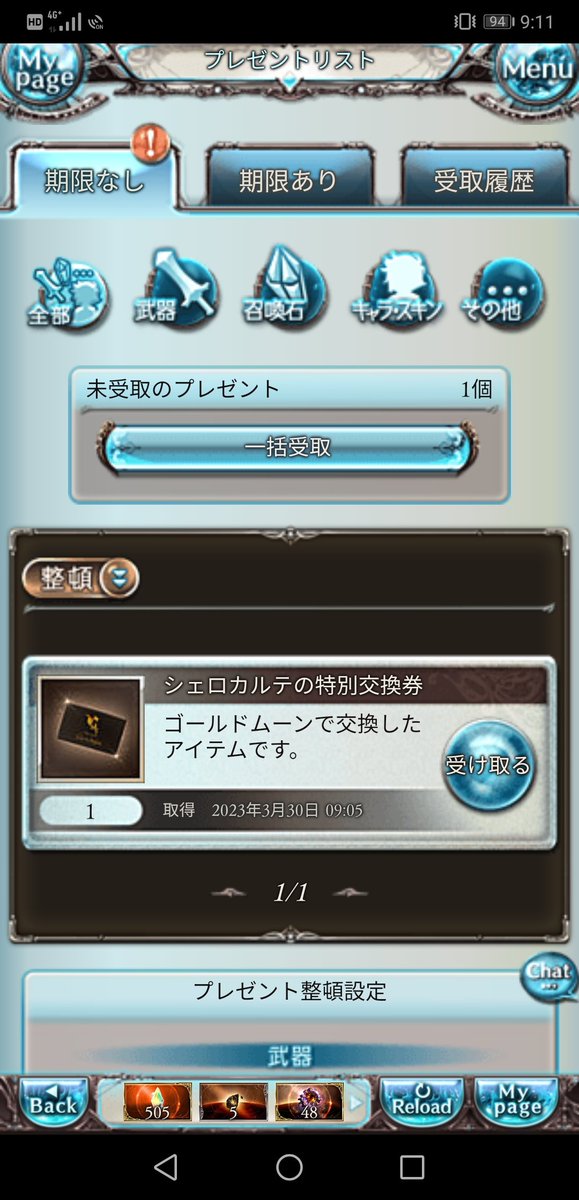 入りきらなかったから今日の分 なんでさあアークここ最近で3本出てんの??? もう2本持ってるし(1本はシェロチケ)前にダマスカス6個ぶち込んだ後なんですわ!!もう終わりだよ…
