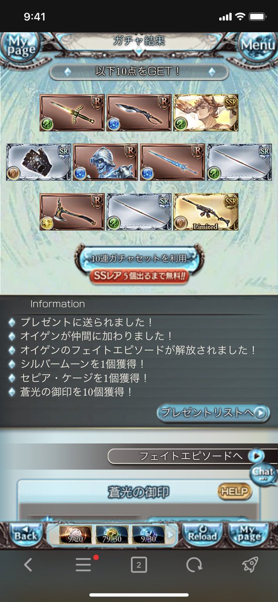 今回無料分は新規キャラなかなかお迎えできなくて運命力のなさを嘆きつつもフィニッシュ。天井道中でやっとポセ兄お迎え、天井はルオー、アニバチケはバレカシとなりました。さあ後は明日の更新でシェロチケ我慢出来るかどうか……。