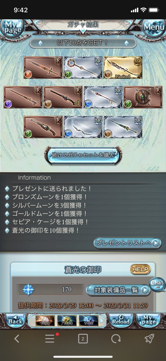 100連とムック…ゴームン7召喚石5なのでわりと結果は悪い訳ではないんだけど…新規は無しなのとゴームンの貯蓄が4枚目のシェロチケ分まで貯まったので、もう新規の子は自分で取りに行くもん😂ってなってリミパー様お迎えに行ってきたよ✨