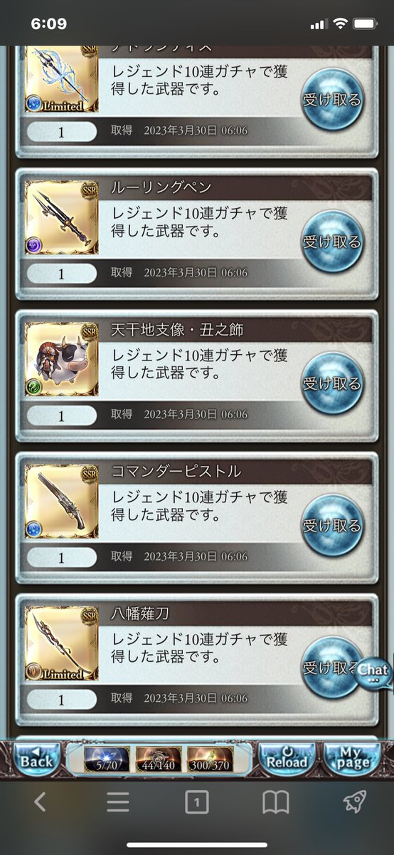 グラブルの無料ガチャ最終日直前で石100連分貯まるもガチャピン当たらず 天井無理なら新浴衣に回そうかと思ったら未取得だったチケでSムック20連以上なら天井迄きて 最終Sムック30いったので 天井まで回して昨日の無料ガチャとチケでシャトラとクビラ 天井でアニラで現状迄の十二神将コンプ出来た!