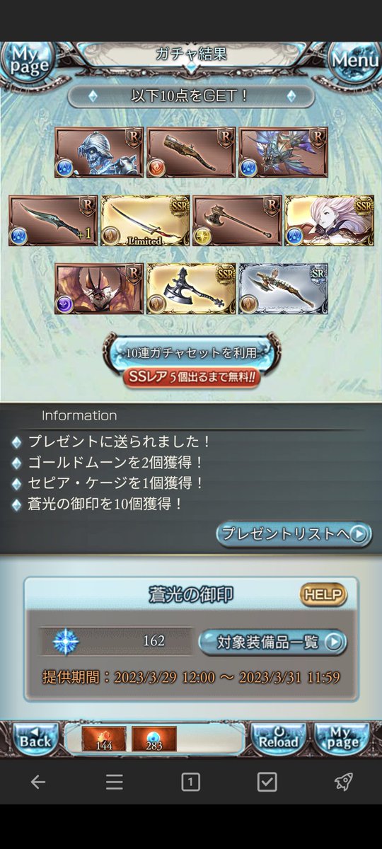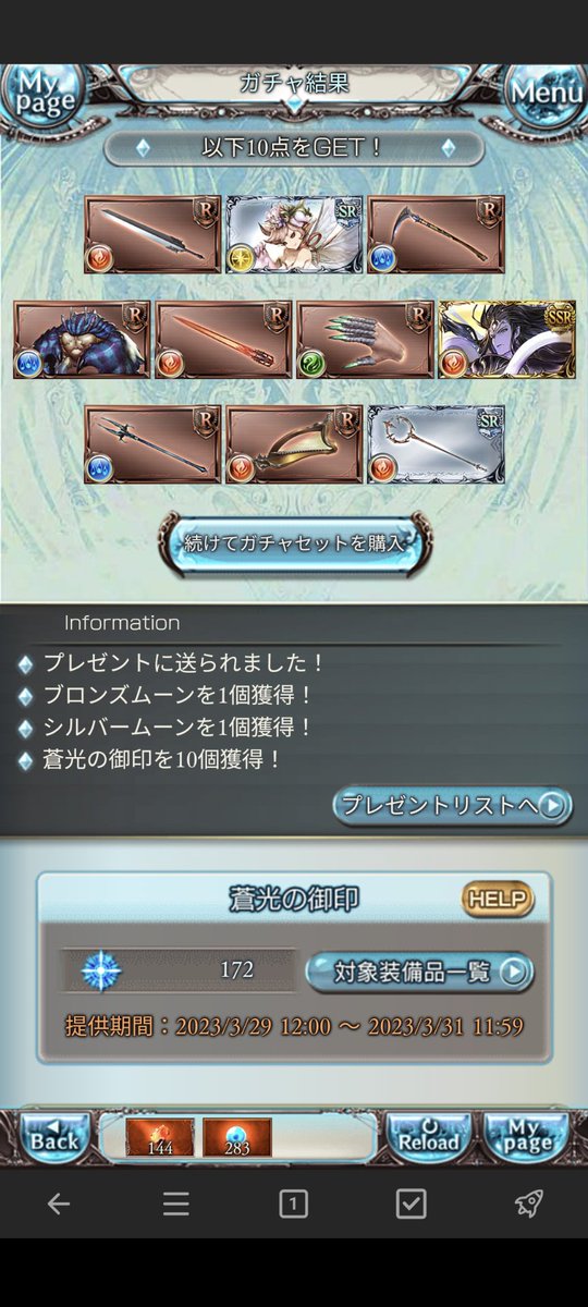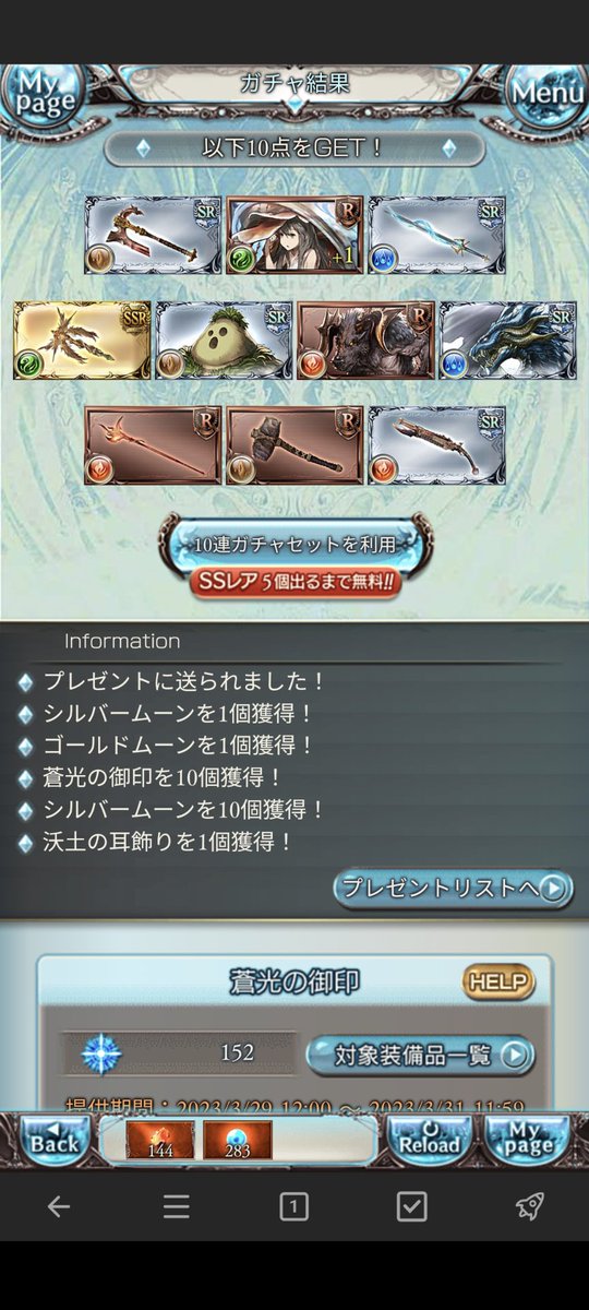 最終日100連+スーパームック40連 なんか回線不調でガチャ演出出なくてあとからプレボ確認するという😭 画像+リミポセイドン+ゴム3 で計SSR10 なにげに初鰹 今回全体的に石多かったなぁ〜 ガチャムク様〜ありがとうございました!✨