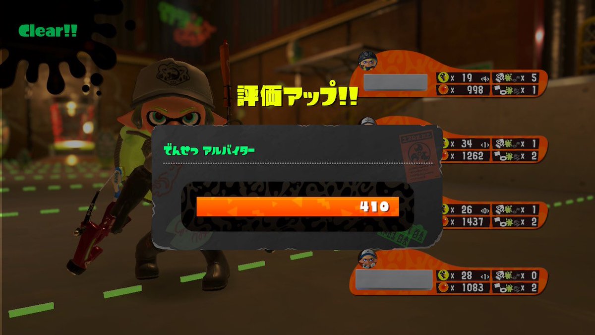 ダイナモローラー引いたやつがグリルに向かってバシャバシャしててあーあ使えねぇなと思った。グリルのローラーはコジャケ共引くのが仕事なのにキル数稼ごうとしてんの強欲にも程があるだろ。今回の武器構成はグリルにダイナモが攻撃しないといけない程火力低くねぇから。スパだけでどうにかなるんだよ