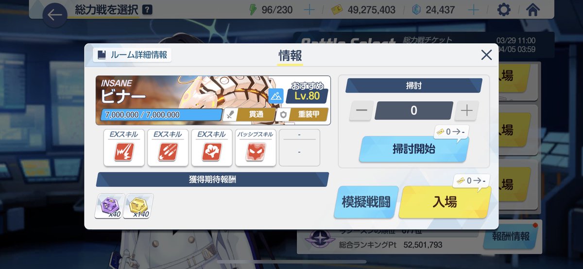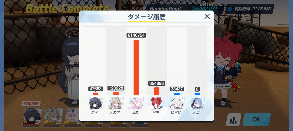 とりあえずビナーくんinsのタイムここまで縮めれた、もうちょい頑張ればおれもワンチャン2500万乗せれるかも?てかヒマリ2凸までやったけどめちゃくちゃ変わるやんけこれ