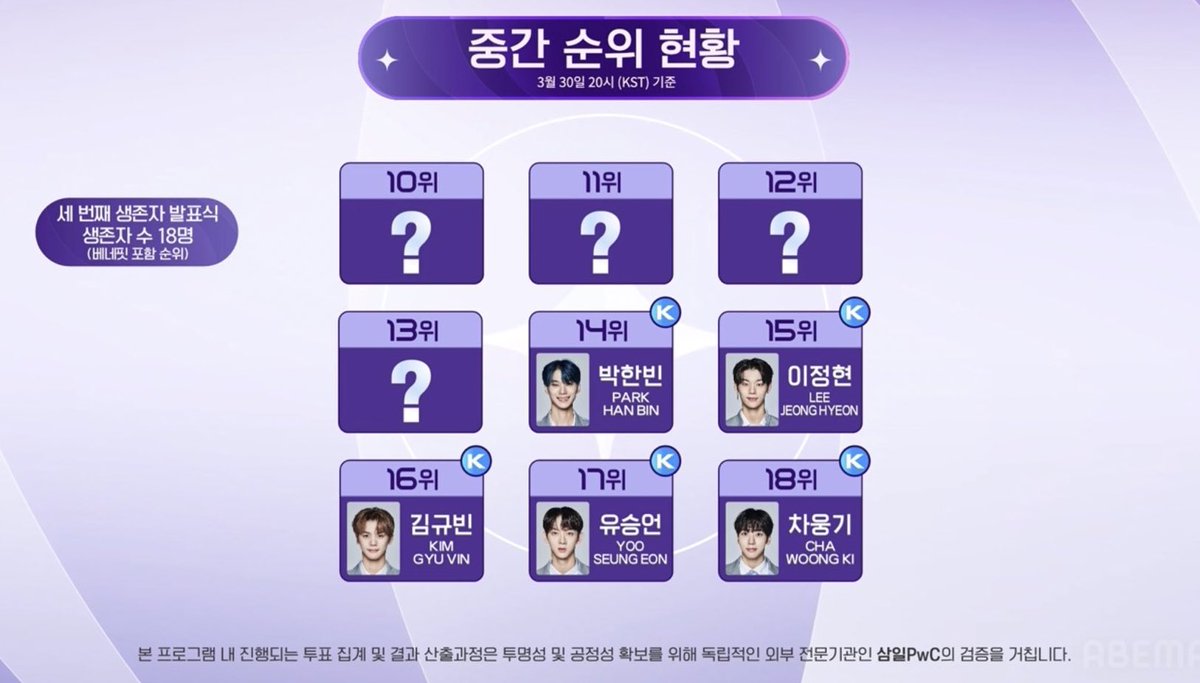 あとすっごい不安なんだけどズハオの中間順位が明かされなかったのは脱落圏内だから?エムネならズハオ落とすために明かすと思うんだよね、今までの感じ