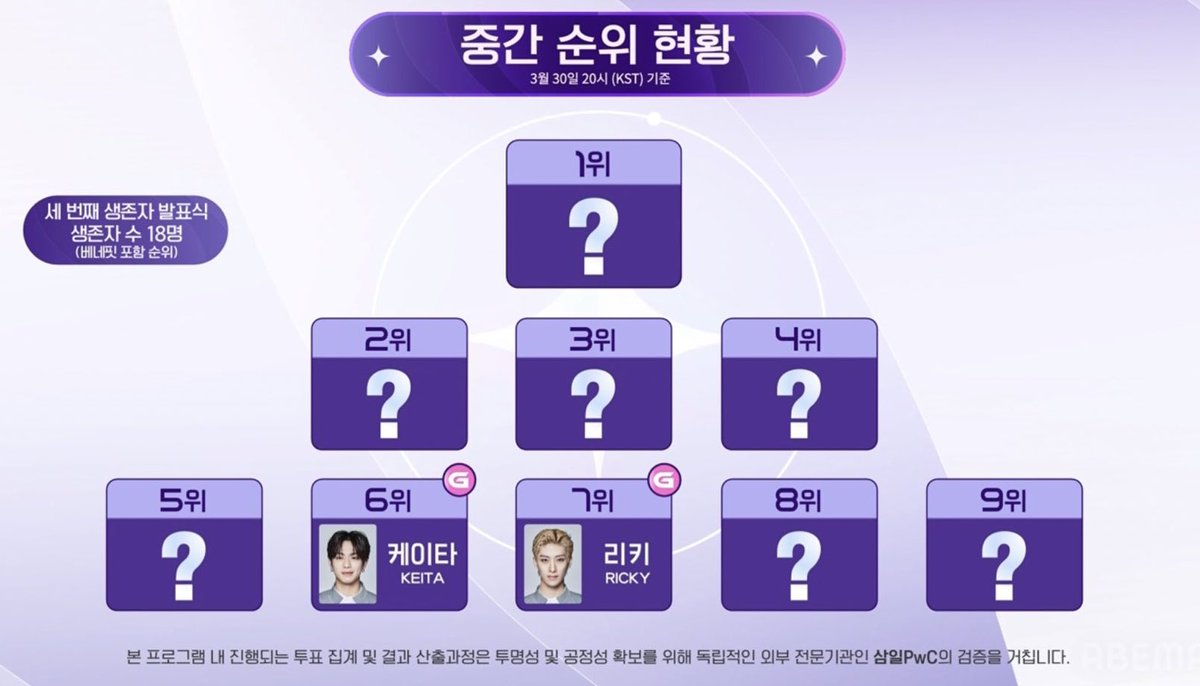 この中間発表ってなんの意味あるんですか?バカなもので、ケイタとリッキー順位上がってる!凄ーい‼︎としか思わなかった汗 ギュビンについては救済が来るんだろう…マシュー推し日本人としては、ケイタをデビューさせたいです。気持ちわかる方いますよね…??