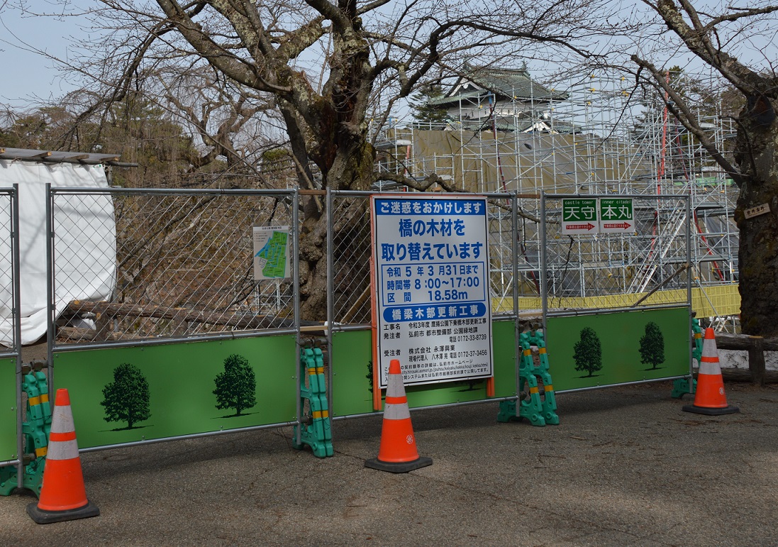オハヨウ弘前、日曜の朝です。 気温は+1℃。天気予報に傘マーク。 昨日、公園に行ってきました。 花を待つ古城、下乗橋は今月いっぱいで化粧直し。 健康チェック、車の点検、今日も元気に。