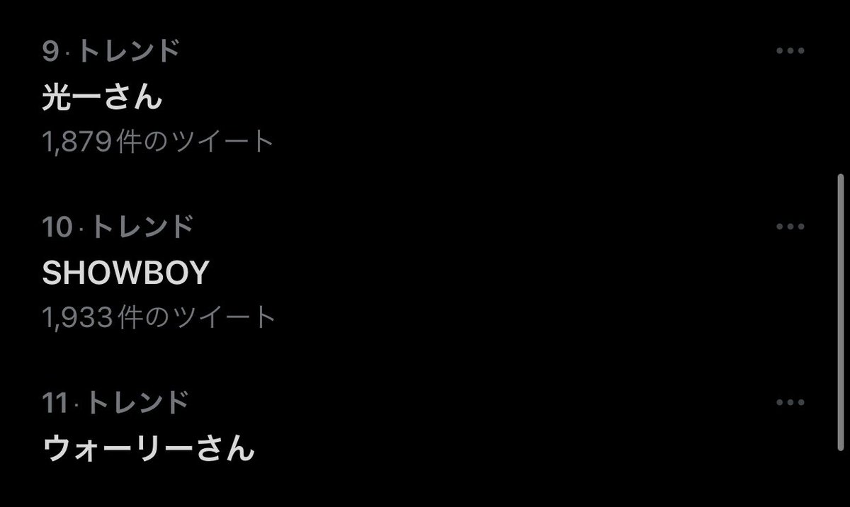 トレンドに「光一さん」と「ウォーリーさん」に挟んでる「SHOWBOY」 こちらもウォーリーさん演出で光一さん絶賛の舞台なのでぜひとも観てください!