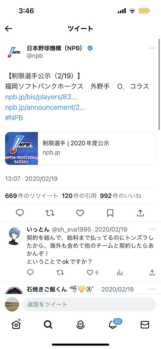 初めて聞いた制限選手という制度、選手個人の将来(2年間)を犠牲にして、尚且つ当該期間に選手の枠が1つ減るという球団-選手双方にとってデメリットでしかない事を今回契約を破棄された球団側が決断するってかなり勇気がいるよなあと。 結局、球団としてはそんな決断を選べないと思う。 過去↓