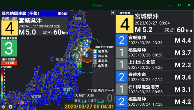 TVニューストレンド 津波の心配 pikakichi2015@gmail.com 3月 27, 2023 0 百均男🇺🇦(フォ口バ)@gh_daiso01 フォローする 【地震情報】宮城県沖 発生時刻 2023年3月27日 0時04分ごろ 震源地 宮城県沖 最大震度 4 マグニチュード 5.2 深さ 60km 緯度/経度 北緯38.3度/東経141.6度 情報 この地震による津波の心配はありません。 ※画像はJQuakeのスクリーンショットです。 返信 リツイート いいね 2023年03月26日 15:37:53 目次 ToggleRelated posts:816-n制限選手バイトリーダー Related posts:八木のおっちゃん温泉の人ダーブラ トレンドニュース
